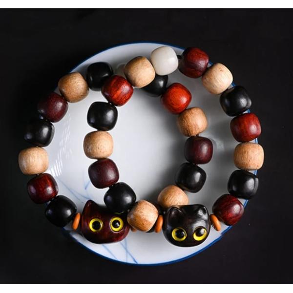 Small Leaf Red Sandalwood Bracelet Cute Cat Engraved Ebony Wood Protection Bracelet Images |